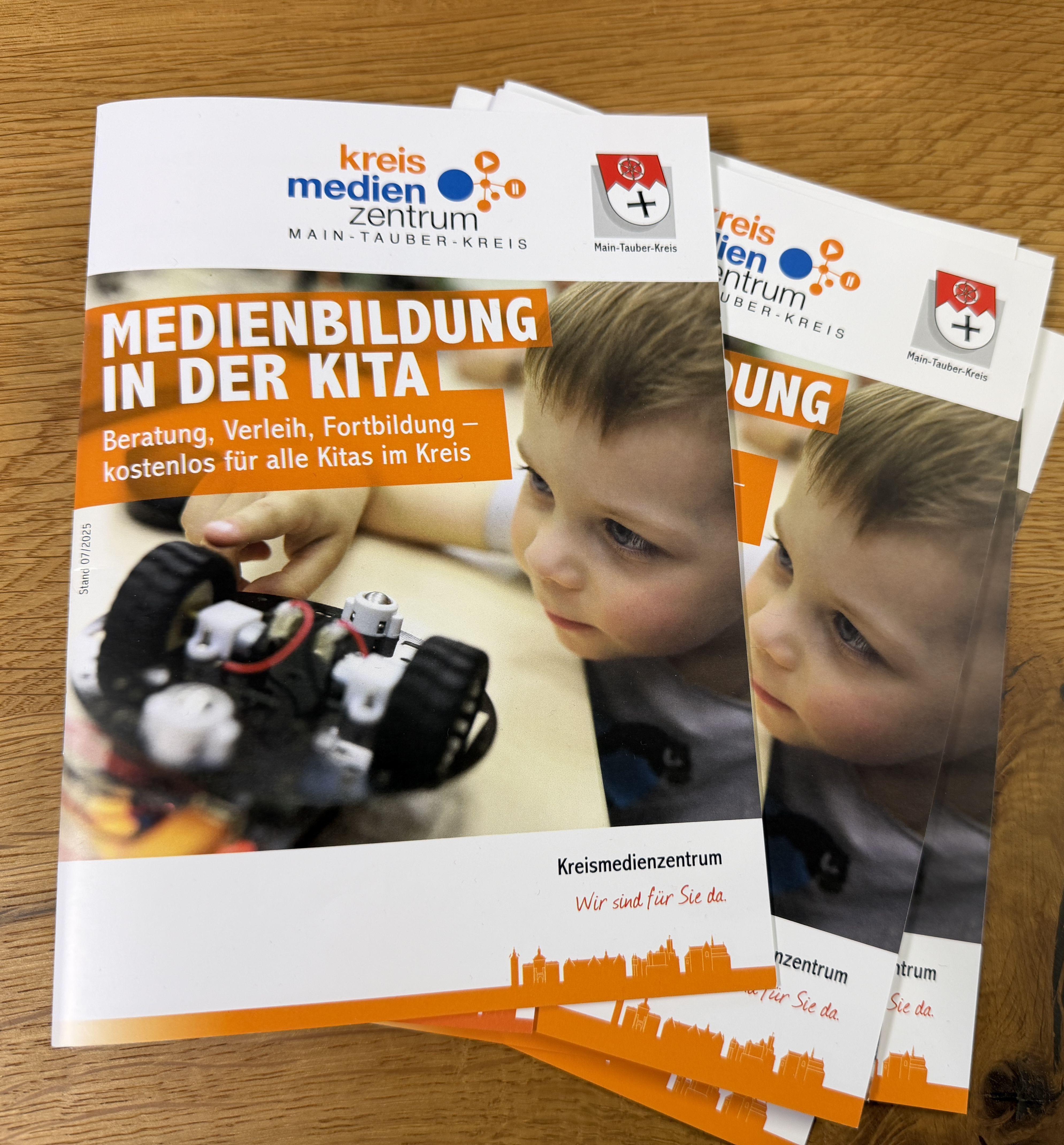 Wir, das Team des Kreismedienzentrums Main-Tauber-Kreis, möchten die Zusammenarbeit und den Austausch mit den Kindertagesstätten in unserem Kreis stärken und freuen uns, Ihnen hierfür unseren neuen KITA-Flyer zu übersenden. In diesem erhalten Sie einen Überblick über unsere Verleihangebote rund um Erzählanlässe, innovatives Lernen, Themenkoffer, Programmieren, Veranstaltungstechnik sowie Fortbildungsangebote.