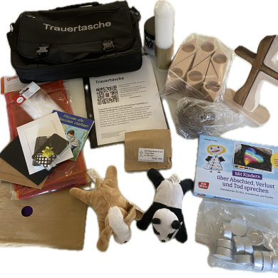 Tasche mit Utensilien, um mit Kindern und Jugendlichen über Tod und Trauer zu sprechen
