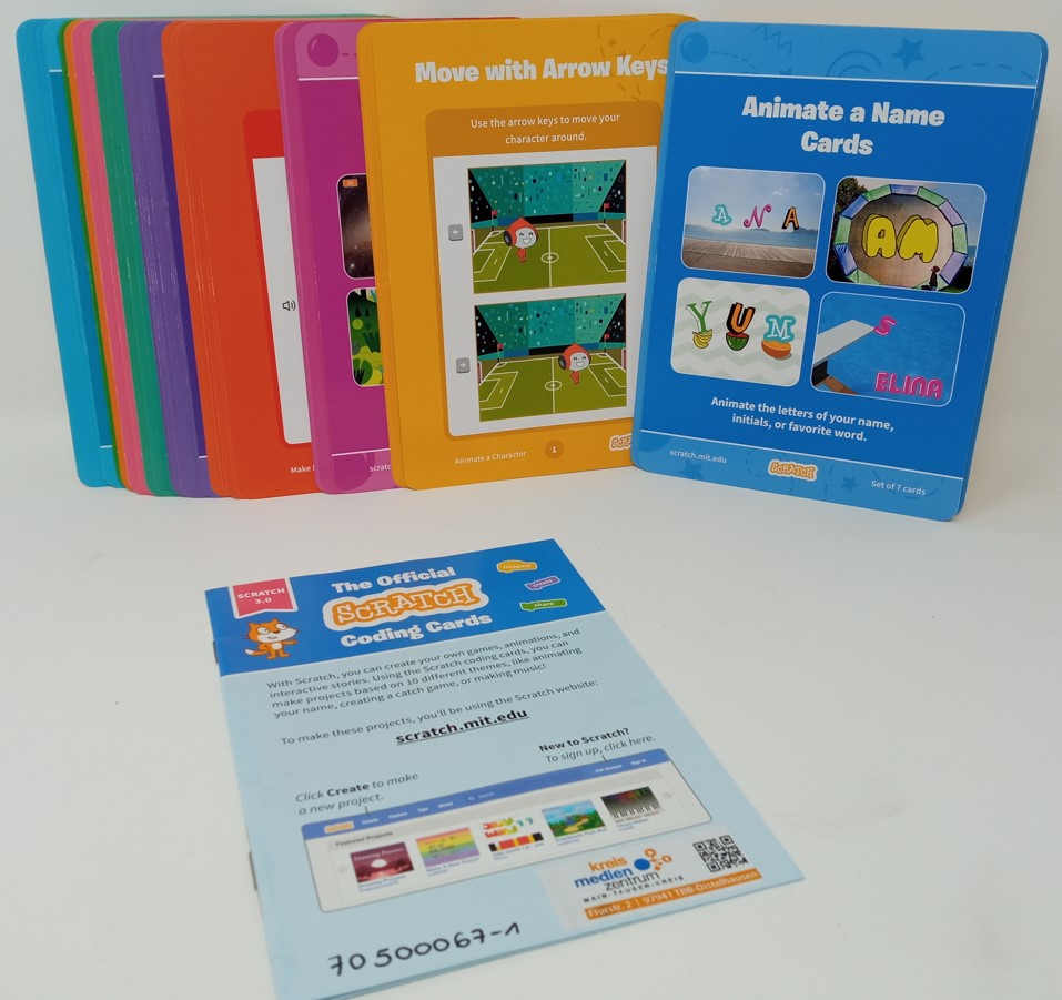 Mit diesen Lehrkarten lernt man zu codieren, indem man mit Scratch, einer visuellen Programmiersprache, interaktive Spiele, Geschichten, Musik und Animationen erstellt. Dieses für Scratch 3.0 aktualisierte Kartenspiel mit 75 Karten enthält interaktive Programmierprojekte. Die Vorderseite jeder Karte zeigt eine Aktivität wie: eine interaktive Geschichte schreiben, ein virtuelles Haustier erstellen, Verstecken spielen. Die Rückseite zeigt, wie man Code-Blöcke zusammensetzt, um Projekte zum Leben zu erwecken. Dabei lernt man Codierungskonzepte wie Sequenzierung, Bedingungen und Variablen.