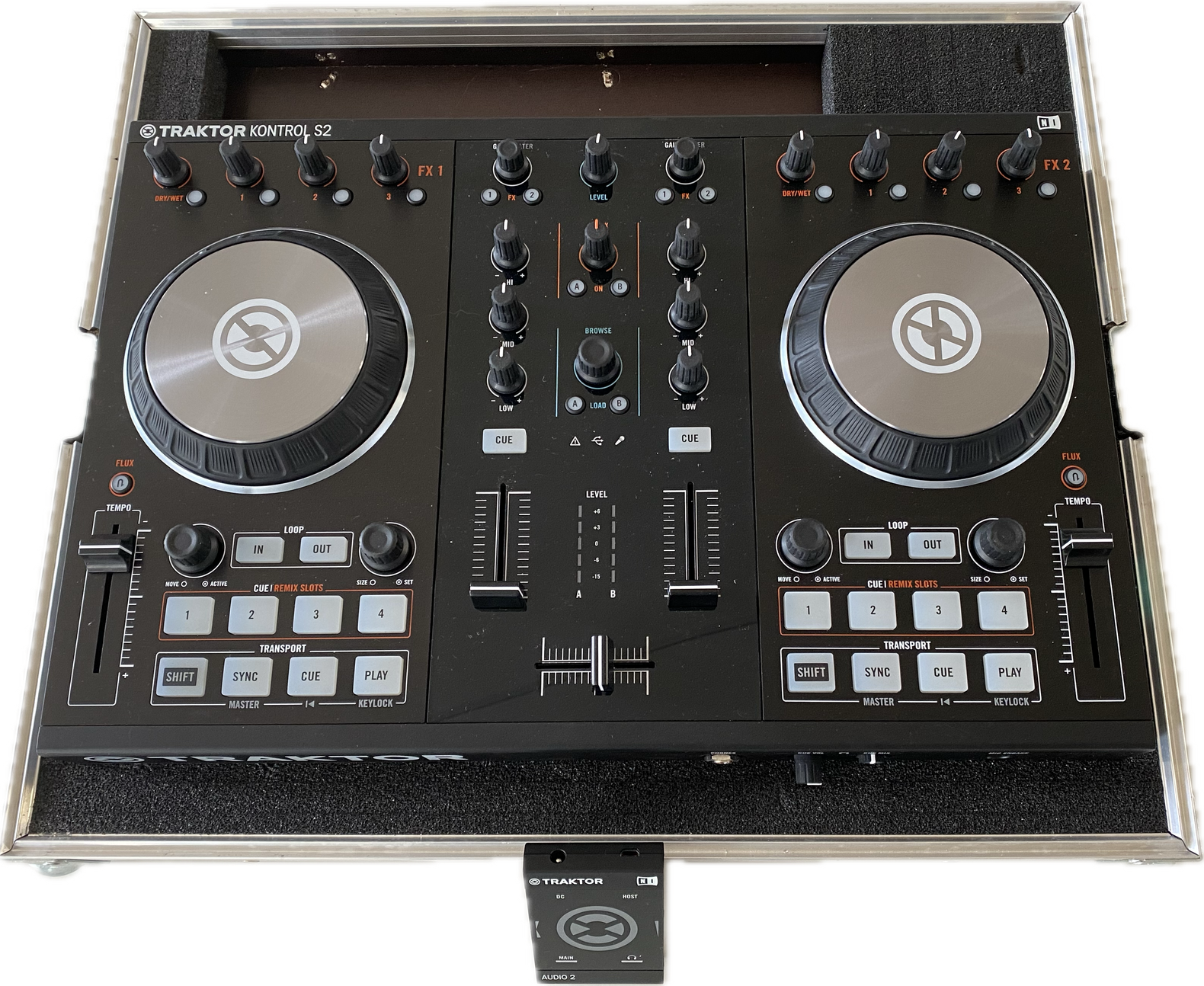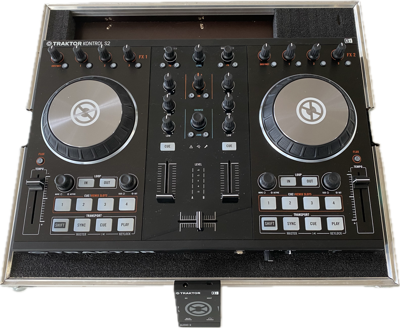 Der TRAKTOR Kontrol S2 ist ein mobiles 2-Kanal DJ-System im Club Standard Layout inklusive hochwertigem Audio Interface. Der Traktor DJ Controller weist ein klar strukturiertes Design auf, sodass man sich auf Anhieb zurechtfindet. Er verfügt über Profi-Funktionen, wie Hotcues, Loop-Steuerungen, Beat-Sync und bietet die Möglichkeit, Tracks zu browsen, Beatgrids auszurichten, Effekte und Funktionen wie den Flux Mode einzusetzen. Die beiden Decks des portablen DJ-Controllers besitzen 5,5“ Jogwheels und stellen insgesamt 16 RGB Pads zur Verfügung.