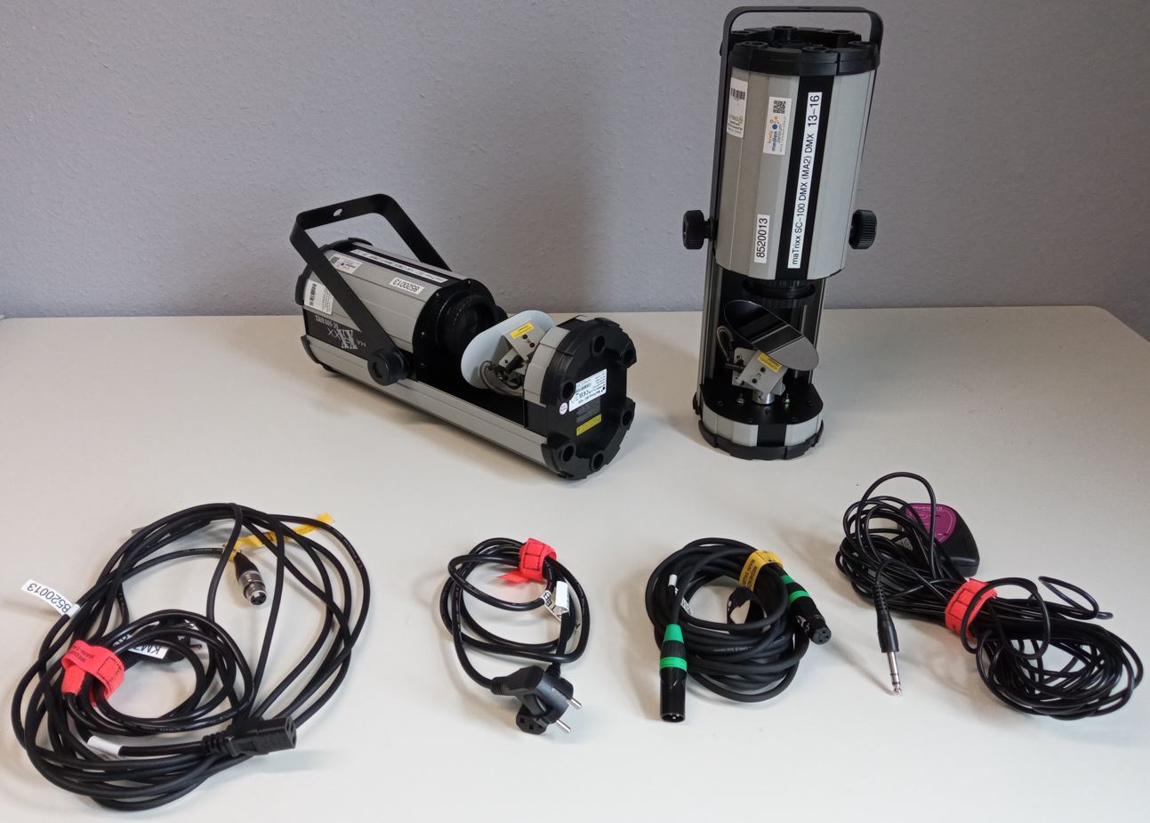2 x LED-Scanner, 2 x XLR-Kabel, 2 x Netzkabel, 1x Anleitung, 1 x Handcontroller zur Steuerung mit Anleitung