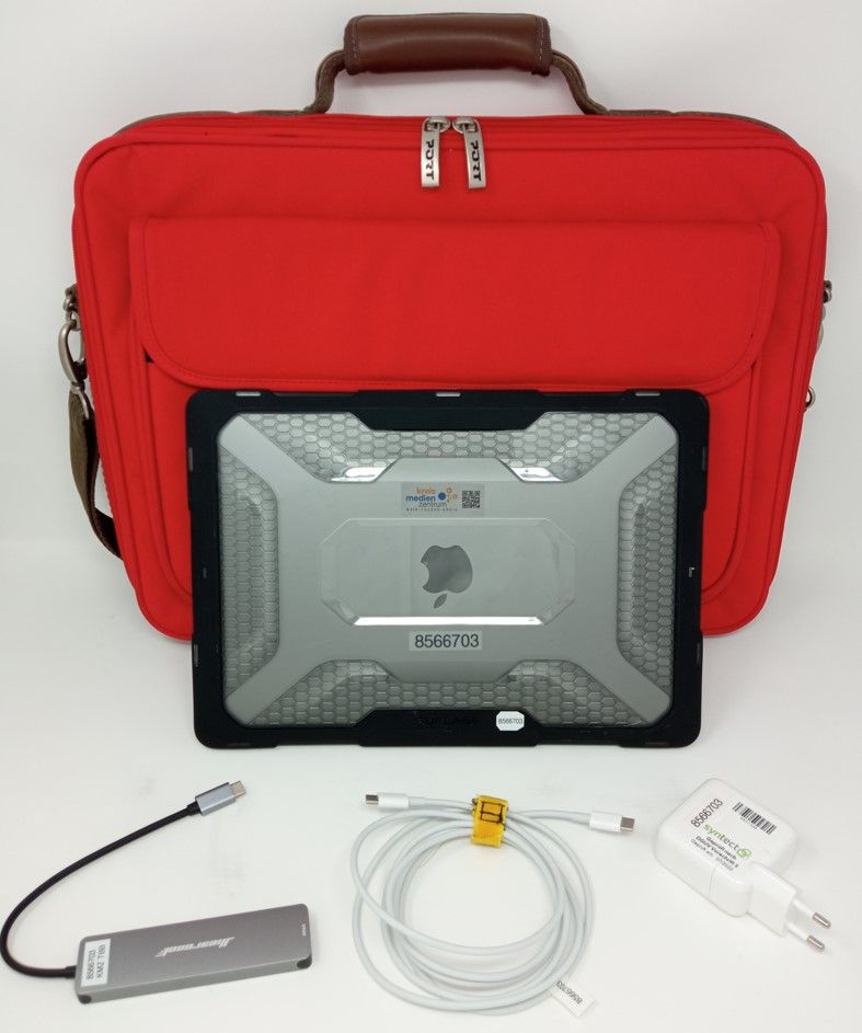 Netzteil, Ladekabel, Multiport USB-C Hub (Adapter 1x HDMI 4K output, 2x USB 3.0, SD-Card Slot, Micro SD-Card Slot, bis 100W PD Slot), Kunststoff-Schutzhülle