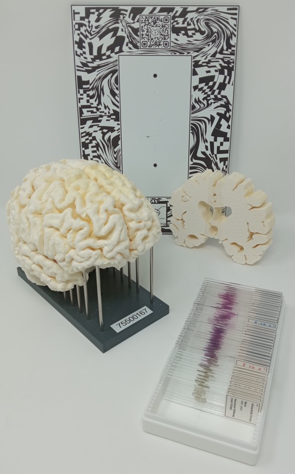 Der Alzheimer-Koffer gibt einen Einblick in die aktuellen Forschungen zu dem Thema Alzheimer und stellt mikroskopische Fertigpräparate mit histologischen Schnitten zur Verfügung, sodass Nervenzellen mit ihren Synapsen betrachtet werden können. Am Beispiel der Erforschung der Alzheimer-Demenz können Themen der Neurobiologie, Molekularbiologie und Genetik erarbeitet werden. Mit Smartphone oder Tablet können die Modelle um virtuelle Informationen ergänzt werden.