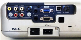 Eingänge: RGB: Mini D-Sub 15-polig, Komponentensignal (YPb Pr) über RGB-Buchseneingespeist, Audio: 3,5 mm Stereo Klinkenbuchse Ausgänge: RGB: Mini D-Sub 15-polig, Audio: 3,5 mm Stereo Klinkenbuchse Videosignale: Eingänge: Cinch, S-Video DIN 4-polig, Audio: 2 x Stereo Cinch