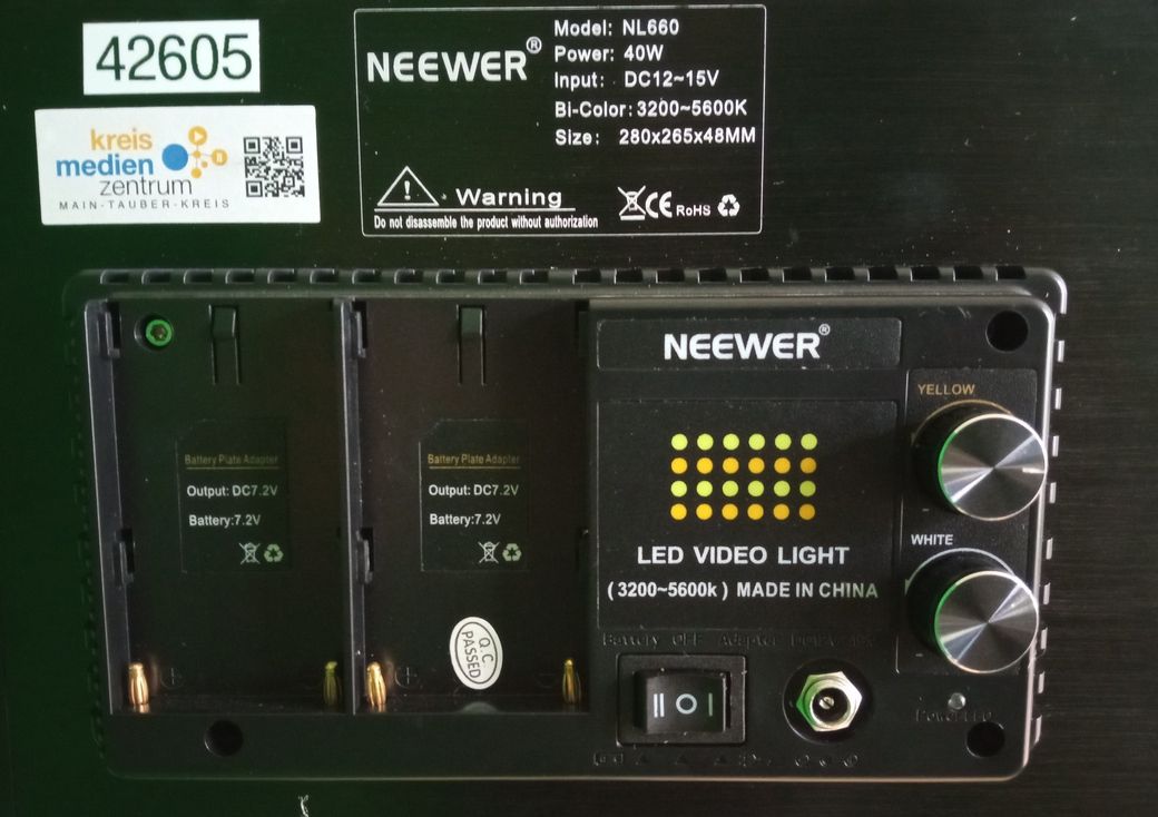 Das Set besteht aus zwei Neewer 660. Eine Leuchte hat 330 weiße und 330 gelbe LED-Leuchtmittel. Damit kann der Warm-/Kaltlichtbereich von 3200K bis 5600K einstellt werden. Durch eine praktische U-Halterung lässt sich der Aufnahmebereich spielerisch ausleuchten. Im Set sind Stativ und Stromversorgung vorhanden.
