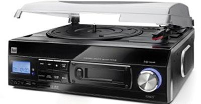 Direkte MP3-Umwandlung (Encoding) von Schallplatte oder Kassette auf USB-Stick/Speicherkarte. Integriertes Kassettendeck, eingebaute Lautsprecher (2 x 3 Watt), MP3-Wiedergabe von USB-Stick oder SD-Karte, Integriertes PLL-FM-Radio, Schallplattenspieler mit Riemenantrieb – 2 Drehgeschwindigkeiten (33/45).