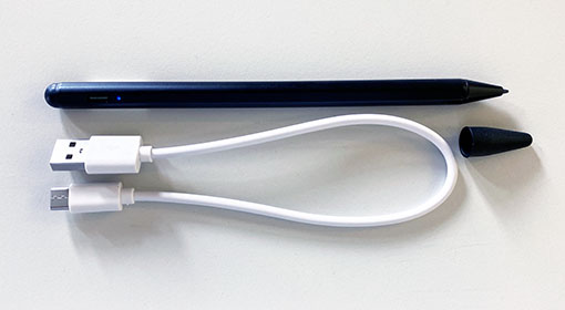 Touchstift mit Schutzkappe, USB-Kabel, Kurzanleitung
