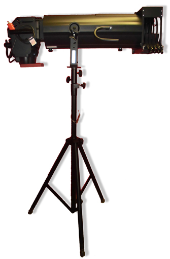 Kompakter Kaltlicht- Verfolgerscheinwerfer, um den Anforderungen von Schulen, Stadthallen und kleineren bis mittelgroßen Theatern gerecht zu werden.