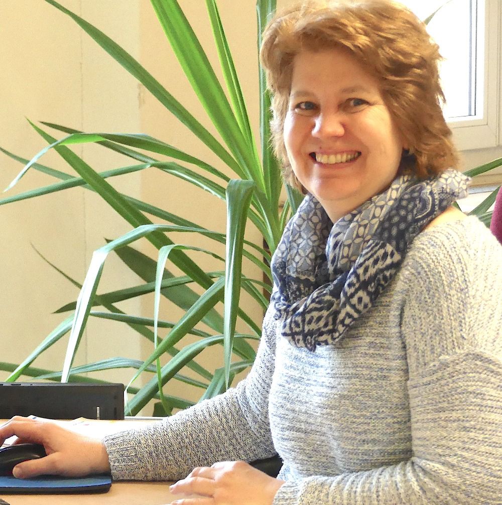 Freundliche und kompetente Beraterin, die sich neue Medien und Geräte genau anschaut und beurteilt. Gleichzeitig hat sie den Haushalt des KMZ im Blick und schlägt sich mit Rechnungsdetails herum.